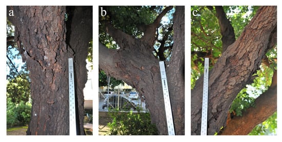 - Gilbert, G.S.; Ballesteros, J.O.; Barrios-Rodriguez, C.A.; Bonadies, E.F.; Cedeño-Sánchez, M.L.; Fossatti-Caballero, N.J.; Trejos-Rodríguez, M.M.; Pérez-Suñiga, J.M.; Holub-Young, K.S.; Henn, L.A. Use of sonic tomography to detect and quantify wood decay in living trees. Appl. Plant Sci. 2016, 4, 1600060. [Google Scholar] [CrossRef]