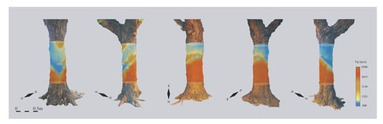 - Liang, S.; Wang, X.; Wiedenbeck, J.; Cai, Z.; Fu, F. Evaluation of acoustic tomography for tree decay detection. In Proceedings of the 15th International Symposium on Nondestructive Testing of Wood, 10–12 September 2007; Forest Products Society: Duluth, MN, USA, 2008; pp. 49–54. [Google Scholar]