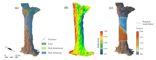 - Wu, X.; Li, G.; Jiao, Z.; Wang, X. Reliability of acoustic tomography and ground-penetrating radar for tree decay detection. Appl. Plant Sci. 2018, 6, e01187. [Google Scholar] [CrossRef] [PubMed]