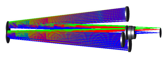 In Equation (5), the parameter −f′1 is the focal length of M1. The image working distance Δ is chosen to make sure the obstruction ratio is minimum and the CCD detector has enough working space.