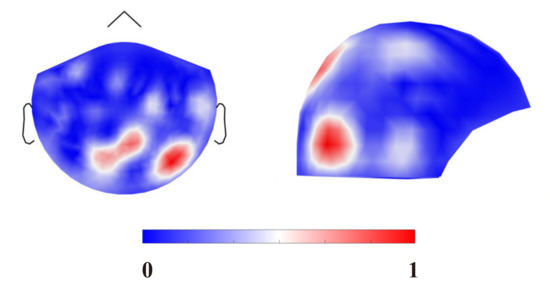 Spatial feature of MEG signals of Subject 1 (left: top view, right: side view).