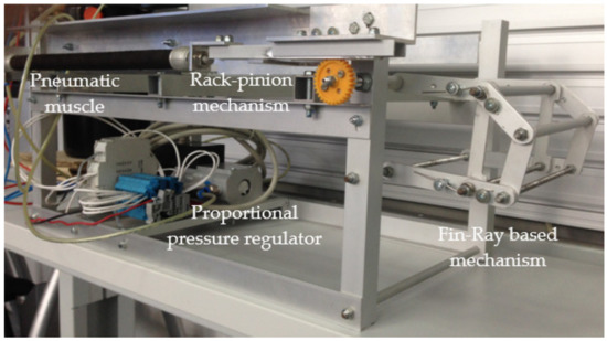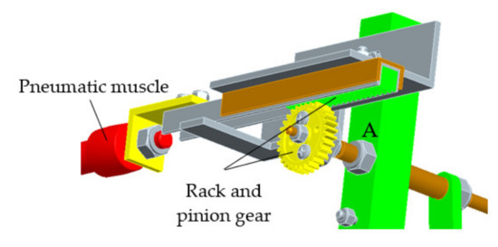 The entire assembly is set into motion by means of a rack and pinion mechanism, the actuator being a pneumatic muscle (Figure 7).