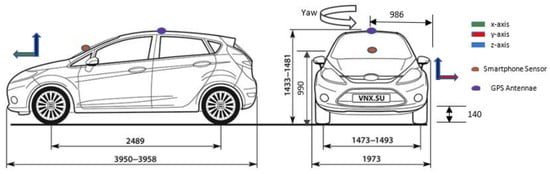 The IO-VNBD dataset, consisting of 98 h of driving data collected over 5700 km of travel and characterised by diverse driving scenarios (publicly available at https://github.com/onyekpeu/IO-VNBD) was used in this study []. The dataset captures information such as the vehicle’s longitudinal acceleration, yaw rate, heading, GPS co-ordinates (latitude, longitude) at each time instance from the Electric Control Unit (ECU) of the vehicle with a sampling interval of 10 Hz. Details of the sensors used in our research can be found in Reference []. A Ford Fiesta Titanium was used for the data collection as shown in Figure 3. Table 1, Table 2 and Table 3 present the data subsets used in this study.