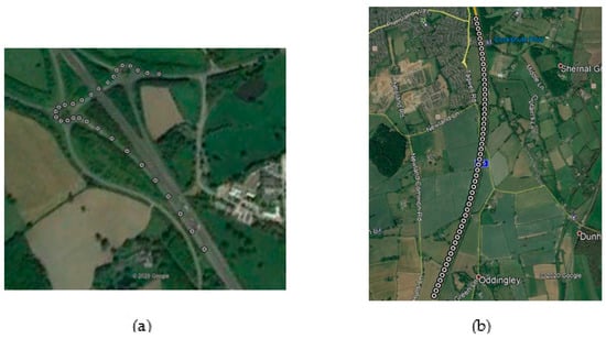 - Roundabout—Roundabouts present a particular struggle due to its shape. The circular and unidirectional traffic flow makes it a challenge to track the vehicle’s orientation and displacement particularly due to the continuous change in the vehicle’s direction whilst navigating the roundabout. Different roundabout sizes were considered in this study.