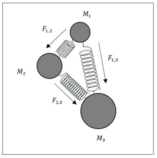 where is the vector of the objective function, in which means an objective function for the i’th member. An m-variable problem has an m-dimensional search space. Therefore, the search space has m coordinate axes corresponding to each variable. Each member of the population has a value on each axis. For each member of the population in each axis, the fixed points on the right and left are defined. Fixed points for a member are members who have a better objective function than that member. This causes two separate forces to be applied to each member on each axis from the left and right, which can be determined using Equations (6) and (7).