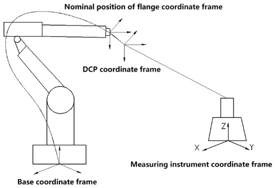 Assuming that DCP measured by the measuring instrument under the above robot pose is , and the coordinate transformation from the robot FCS to the measuring point is , and the following transformation relations exist: