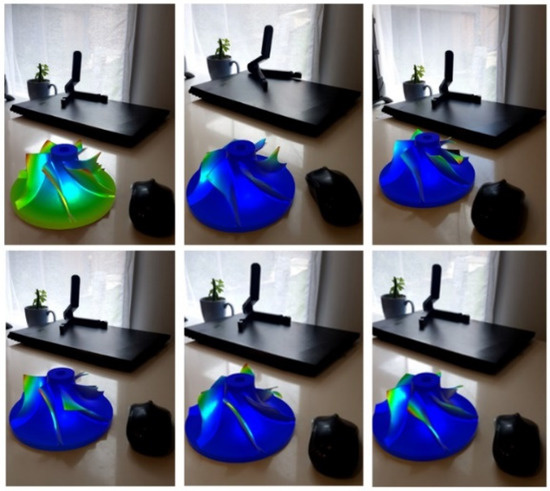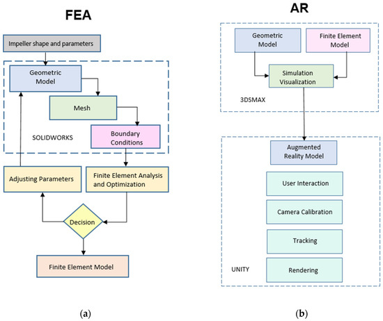 The impeller component has been designed and analyzed on Solidworks 2019 software, which is a computer-aided design and engineering program. The impeller solid model is uploaded to the 3ds Max program. Additionally, the finite element analysis result simulation is upload to the 3ds Max program for simulation visualization. The combined model that is obtained is loaded into the Unity–Vuforia Model Target program, where the application of the AR model is implemented (