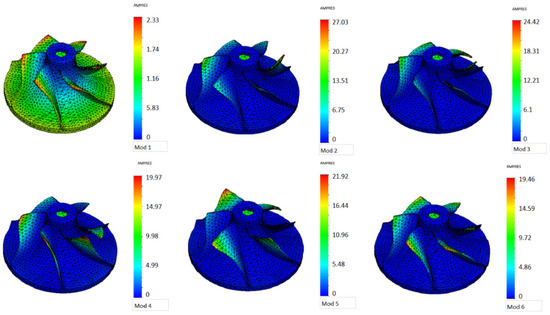 Figure 5 depicts the variation of the natural frequency modes for the impeller obtained as a result of the modal analysis.