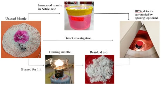 - Shabana, E.; Al-Mogabes, K.; Al-Najem, K.; Farouk, M. Radioactivity in some gas-flow lantern mantles produced by different manufacturers. Appl. Radiat. Isot. 1999, 51, 609–613. [Google Scholar] [CrossRef]
