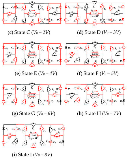 where VT1, VT2, VT3, VT4, VT5, VT6, VS1, VS2, VS3, VS4, VD1, andVD2 are the blocked voltages across switches T1, T2, T3, T4, T5, T6, S1, S2, S3, and S4 respectively.