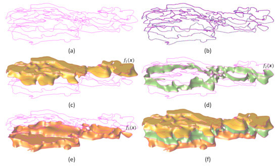 - Huang, Z.; Zou, M.; Carr, N.; Ju, T. Topology-controlled reconstruction of multi-labelled domains from cross-sections. ACM Trans. Graph. 2017, 36, 1–12. [Google Scholar] [CrossRef]