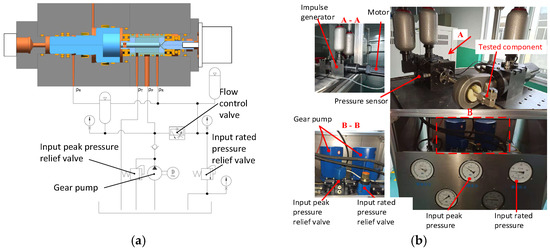 The failure of hydraulic components can have serious consequences, especially when advanced hydraulic systems applied in the aeronautics and astronautics areas involve a complex system structure for meeting the strict standards of compactness [1]. Hydraulic pressure impulses are known as a critical cause of damage to hydraulic components [2]. These impulses are generated by an instantaneous compression of the oil, for instance, at the moment of pumping oil through a volumetric pump [3,4,5], opening/closing valve orifices, or changing the flow direction of oil [6]. Since the hydraulic pressure impulse is obviously undesirable but inevitable in any hydraulic component, it is reasonable, particularly in industries, to perform impulse tests on randomly selected samples to guarantee the reliability of an entire batch of products.