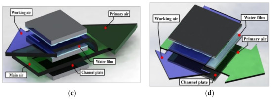 - Meng, D.; Lv, J.; Chen, Y.; Li, H.; Ma, X. Visualized experimental investigation on cross-flow indirect evaporative cooler with condensation. Appl. Therm. Eng. 2018, 145, 165–173. [Google Scholar] [CrossRef]
