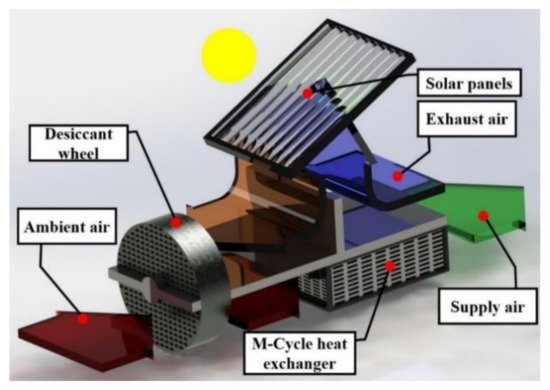 - Delfani, S.; Karami, M. Transient simulation of solar desiccant/M-Cycle cooling systems in three different climatic conditions. J. Build. Eng. 2020, 29, 101152. [Google Scholar] [CrossRef]