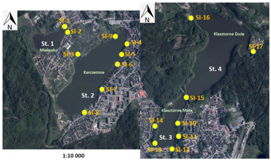 Mielenko, Karczemne, Klasztone Małe, and Klasztorne Duże (of the Kartuzy lake complex) are situated in the town of Kartuzy (Eastern Pomeranian District, Poland). Since 1956, these lakes have been transformed into sewage receivers for storm and municipal sewage [24].