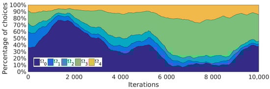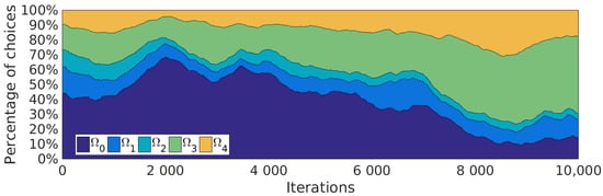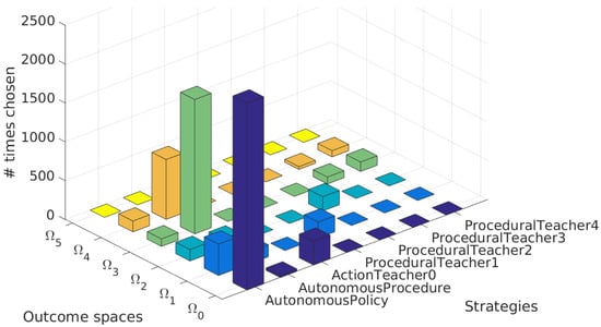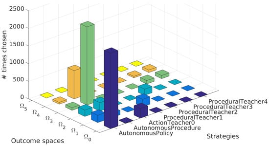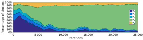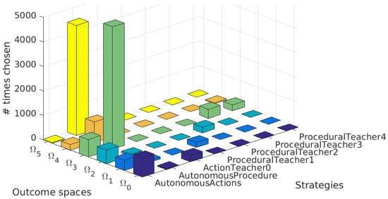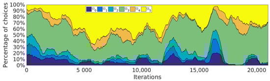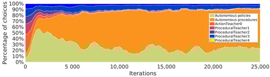 Evolution of choices of strategies for the Left-Yumi-SGIM-TL learner during the learning process on left-arm setup.