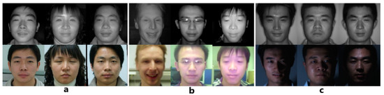 Paired near infrared-visible (NIR-VIS) images in three datasets (a–c) for the CASIA NIR-VIS 2.0, Oulu-CASIA NIR-VIS and BUAA VIS-NIR datasets, respectively.