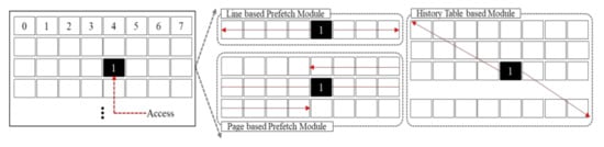 Nesbit et al. [] suggest a structural methodology for prefetching. To provide more accurate prefetching, a prefetcher introduces a history table. Hence, the Global History Buffer (GHB) prefetcher suggests a management method for the history table. The GHB employs index tables and global history buffers to store and track recently requested physical addresses. Furthermore, the GHB structure can simply access the global history buffer by storing the memory access key from the index table. In addition, the GHB prefetcher manages the history table using the FIFO structure. Therefore, the prefetching operation can be activated based on the most recently accessed request.