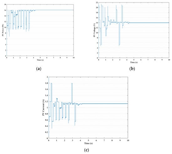 PSC 3 is created by non-uniform irradiances on the PV panels as shown in Table 4. The modified LFO is tested. Again, as can be seen, the modified LFO has successfully tracked GMPP at 16 W as shown in Figure 15. Notably, the proposed modified LFO is stable, and no steady-state oscillation is observed.
