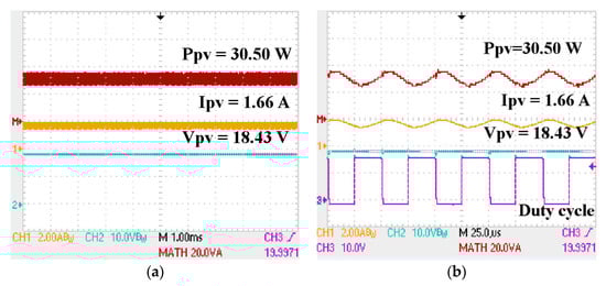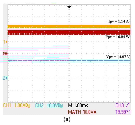 where Vom is the output voltage and VmG is the maximum voltage at maximum irradiance. The value of the inductor, L, is given in Equation (7) [].