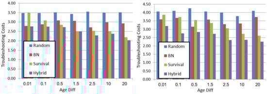 Friedrich and Nedjl [35] propose a troubleshooting algorithm aimed at minimizing the breakdown costs, a concept that corresponds roughly to a penalty incurred for every faulty output in the system and for every time step until the system is fixed. Hakan and Jonas [32] consider future repair actions using expected cost of repair and heuristic functions. They use a Bayesian network as the MBD and update the current belief state after each iteration. McNaught and Zagorecki [36] also used two "repair" actions, but they do not use the prognostic information to decide which repair action to perform. Additionally, they did not use survival curves, but rather a dynamic Bayesian network which was unfolded to take time into consideration.