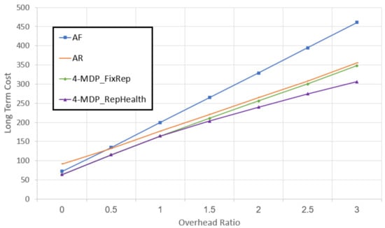 - Overhead ratio. This is the ratio between and . Recall that this cost is incurred whenever the system fails; this variable is relevant only for the replace-healthy dilemma.