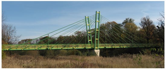 - Banaś, A.; Jankowski, R. Experimental and Numerical Study on Dynamics of Two Footbridges with Different Shapes of Girders. Appl. Sci. 2020, 10, 4505. [Google Scholar] [CrossRef]