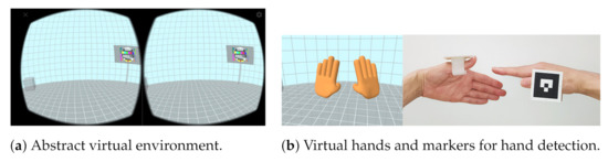 Lee et al. [22] provide an interesting example of visual markers applied in gesture-based tangible interactions for mixed-reality environments. In this case, visual markers are used not to track an everyday object, but a part of a user’s body: the hand. In our prototype for the Tangible VR Book, we also experimented with visual markers on the user’s hands as a way to provide visual feedback about the position of the hands.