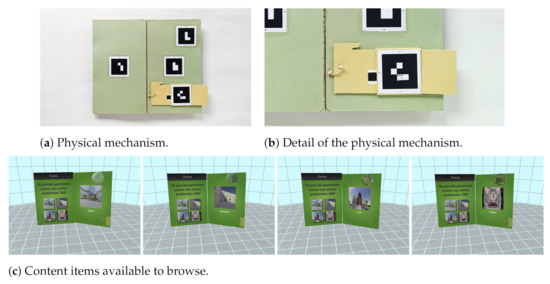 The portal functionality was not well understood by some participants. On the one hand, the book provides a familiar format with known affordances. On the other hand, this means that adding functionality not normally present on a book needs careful consideration and design. Additional visual cues would be necessary for users to understand the action possibilities of the portal. We believe the tangible slider suffered from a similar issue. Although it has the potential to provide a richer haptic experience, and represents a low-cost way to make a dynamic type of object, it was the least preferred option. This may be because it departs too much from how users move through content in e-book readers, for example.