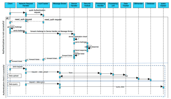Authentication is one of the main functions that is applied by the device module in the fog server. Authentication of the device module is considered as a strong authentication since the device module employs the complete authentication to generate a ticket that will be stored in the AuthTracker upon finishing the complete flow. To reduce the response time, there is no need for strong authentication whenever an authenticated device would like to connect to the fog server, instead the ticket stored in the AuthTracker can perform quick authentication. Data processing by the fog server will be performed after passing the authentication process. Note that a ticket will be invalid when there is no connection between the device and the fog server for a defined period of time.