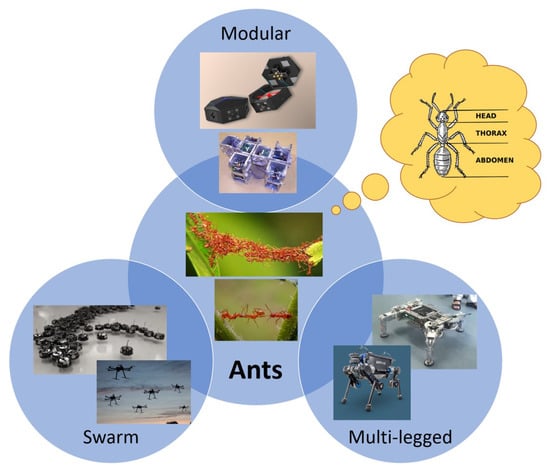 The design concept for the proposed ant-like robot is inspired by a variety of robot categories.