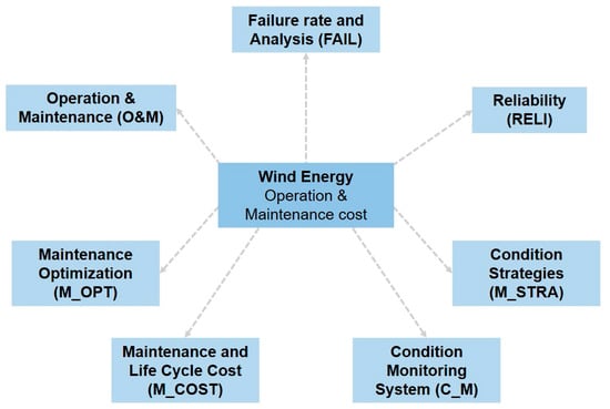 To facilitate the study of these fields of O&M cost (Figure 2), a group of keywords is defined for each field (Table 2). It should be noted that several experts, with more than 20 years of professional experience, helped the authors to identify the most important keywords and their grouping methodology. These experts are responsible for the maintenance of several wind farms in the region of Galicia (Spain), affiliated with private companies.