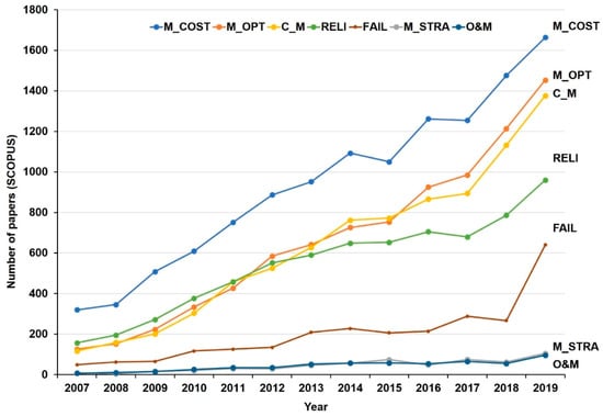 - Maintenance and life cycle cost (M_COST): Research covering topics related to equipment costs are taken into account in this variable.