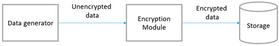 An overview of the pattern is provided in Figure 3. As can be seen in the figure, the Data generator creates the unencrypted data and sends it for storage. Right before the Storage component, the Encryption Module transforms the clear-text version of the sensitive data. Finally, the sensitive data are stored in the Storage unit in an encrypted form.