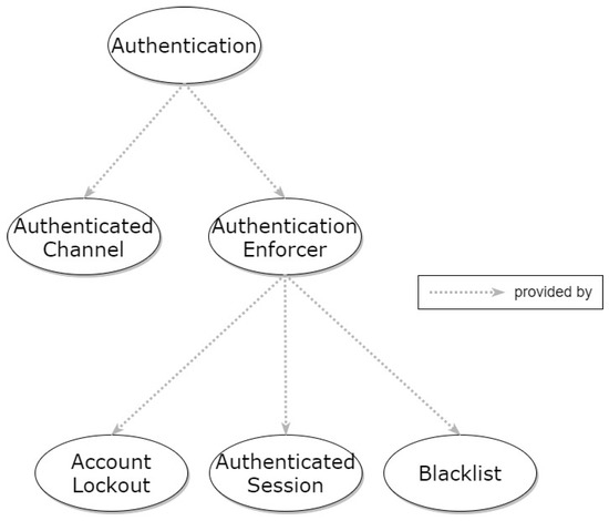 - Creation of an SP Pattern Collection featuring classification of said patterns based on the individual properties they cover, being categorized using a hierarchical taxonomy (the most widely accepted approach to tackle this issue, as shown by Hafiz et al. [12]). The proposed approach for pattern organization allows classifying patterns based on provided property, context, and generality, while also facilitating pattern relationships’ specification, the retrieval of patterns, and, consequently, the verification of the associated properties. When visualized, this results in tree-form graphs connecting the defined properties and associated patterns, as will be presented in the Sections that follow.