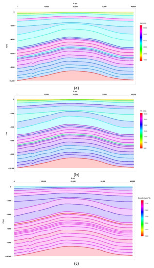 Numerical modeling of seismic wave propagation is a powerful way to understand real seismic data acquired in an area, because these methods closely simulate seismic waves from their generation at the source until recording at the receiver. Seismic numerical modeling is best done in a 3D sense in order to closely simulate wave propagation in 3D earth models. However, it can also be done in 1D, 2D, and 2.5D models in some applications to reduce the simulation time. Various methods are used to simulate 3D seismic wave propagation including finite-difference, e.g., [1,2,3,4], finite-volume, e.g., [5,6,7], and Lattice–Boltzmann, e.g., [8,9,10]. In particular, the finite-difference method covers an intuitive and practical modeling approach because it can be used for single-and multi-dimensional spaces and wave equations of any complexity. In the literature, the viscoelastic models and synthetic seismic data, calculated using finite-difference method, have been used as input in various studies [11,12,13,14]. Regardless of the simulation method, increasing levels of wave equation complexity can be used to model seismic wave propagation depending on how realistic the depth model is. The simplest but least realistic model uses the acoustic wave equation where only P-wave and density are considered. On the other hand, the most complex and realistic model uses an anisotropic poro-viscoelastic wave equation, which addresses almost all types of seismic waves and phenomena [15].