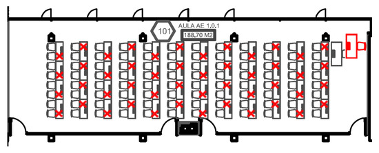 The implementation of SII from a speech signal recorded in any room location we wish to analyze, makes it much easier the necessary signal processing and therefore the calculation capacity of the devices used. Taking into account the current pandemic times and the problems derived from the COVID-19 in the field of education, the adaptation of classrooms originally not intended for teaching has been considered a must to deal with the implementation of social distancing policies (see Figure 1). In this context, we found particularly interesting to be able to have a rapid measurement of speech intelligibility at different points in a room and to be able to act accordingly.