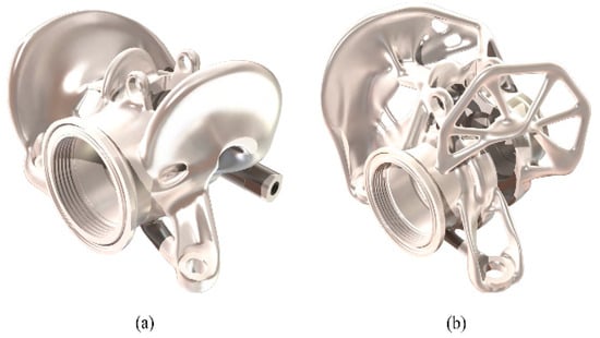 16]. On the other hand, the redesign of the optimized designs contributes to the overcoming of these complexities and makes their manufacturing feasible by the conventional manufacturing processes (CMP). In addition, it and can eliminate possible overhangs at the 3D-printing parts. However, it can be time-consuming and, in some cases, challenging. In addition, the 3D printed parts can contain discrepancies compared to the numerical solutions.