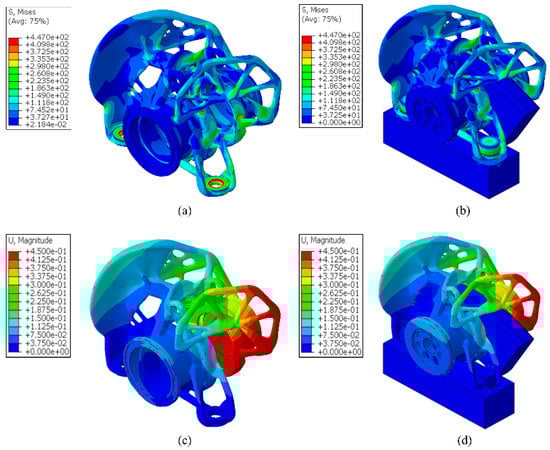 Figure 7. The 3D models were discretized using 1 mm tetrahedral finite elements, resulted in 2,334,921 and 1,981,349 total elements for the front and the rear housing, respectively. The assigned material was an anisotropic Ti6Al4V with Young’s modulus