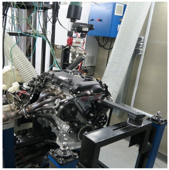 The experimental analysis of a KIA Cerato engine was accomplished in specialized engine test facilities, the details of which have been reported in our recent studies [,]. The laboratory testing and calibration standard code and the engine test standard code are ISO 17025 and ISO 1585, respectively []. The main output parameters (brake specific fuel consumption (BSFC), torque and nitrogen oxides emission production rate) of the engine at various engine speeds were recorded and compared with the AVL BOOST model outputs for validation. Table 1 shows the specification of the KIA Cerato engine.