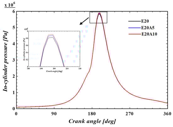 Figure 6 shows the engine power trend when ammonia is injected in different fractions at different engine speeds for the E20 fuel. As can be seen, ammonia injection had a small positive impact on engine power. The variation in engine equivalent BSFC caused by the injection of ammonia is also shown in Figure 7. The port injection of ammonia showed a positive impact on BSFC via a slight increase in engine equivalent BSFC. At the maximum ammonia injection (A10), the engine equivalent BSFC increased up to approximately 3%.