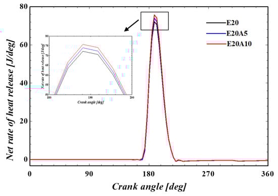 The net rate of heat release in various crank angles at engine rated RPM.