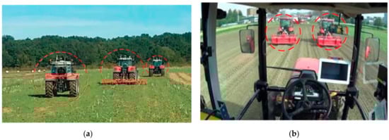 - Xi, Z.; Marcus, G.; Patrick, O.N.; Ludwig, G. Development of an intelligent master-slave system between agricultural vehicles. In Proceedings of the 2010 Intelligent Vehicles Symposium(IV), La Jolla, CA, USA, 21–24 June 2010; pp. 250–255. [Google Scholar] [CrossRef][Green Version]