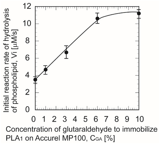 Effect of immobilized phospholipase A1 with glutaraldehyde treatment on the initial reaction rate.