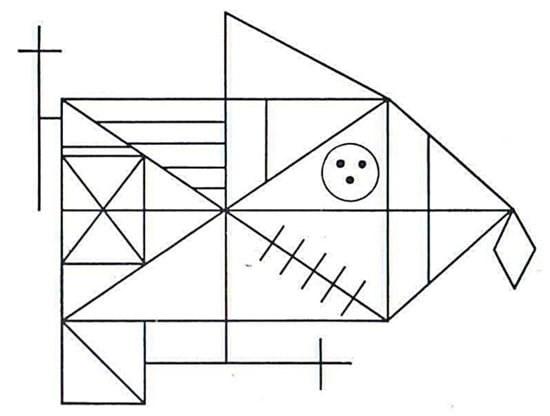 The Rey–Osterrieth Complex Figure Test (ROCFT) created by Rey and Osterrieth [] consists of drawing an exact copy of the drawing shown in Figure 6, which is always in view. Once the user has finished drawing and after a lapse of three minutes the user must draw the same image again, but this time without seeing the original object. This test has no time limit, and 18 aspects are evaluated with two points each, so the maximum score is 36. Several studies collect normative/standard data on non-clinical sample neuropsychological measures [,,,].