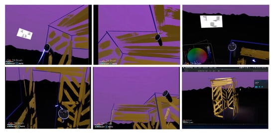 Some investigations have probed that immersive virtual reality allows designers to create new points of view by means of an immersive experience and the possibility to walk around the three-dimensional sketches []. Other studies have highlighted the positive effect of VR-based design that makes a significant leap forward allowing for a development of design solutions in the same creative process []. Other researchers have successfully integrated key attributes of hand drawing into a new virtual reality medium for design development. Yang and Lee [] have shown that three-dimensional drawings in immersive virtual reality help designers reduce their dependence on external representations while improving their mental processes for the transformation and consolidation of their ideas. Furthermore, the application of immersive virtual reality extends to solution spaces and has an overall positive effect on the problem-solving process as a whole.