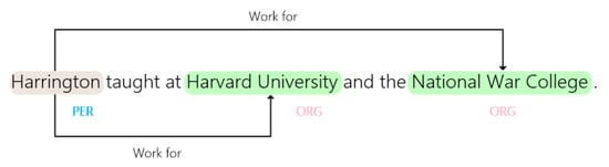 In this research field, Ref. [56] proposed a dataset for document-level relation extraction tasks, and summarized several types of relational reasoning like logical, coreference, common sense, and so on. Recently, many works like [57,58] have begun to tackle the problem of cross-sentence relational reasoning, which is an important research direction in the future.
