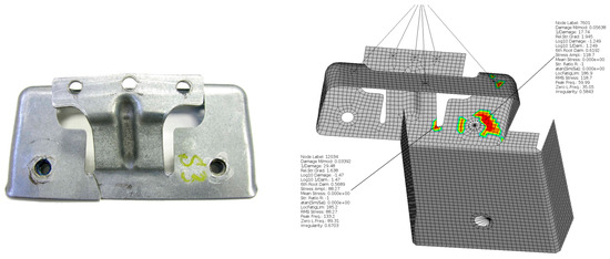 Many examples can be found in engineering practice, where instead of the whole model, only one of its components or subassemblies is analyzed. In such component tests, only ideal constraints are often used. This can, in some cases, lead to errors (e.g., in life prediction). In study [32] it was shown how problematic it is to calibrate a numerical model with ideal constraints so that the results of the fatigue analysis match the experimental data. The subject of the analysis was a car horn holder (Figure 11).