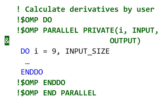 Parallel) method. In this case, Open MP is employed in order to parallelize the subroutine coded in the Fortran programming language.