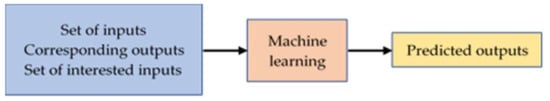 Machine learning (ML) process. ML utilizes sets of inputs, the corresponding outputs, and interested inputs to yield the predictive outputs.